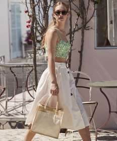 Cotton pocket natural starched jute midi tote