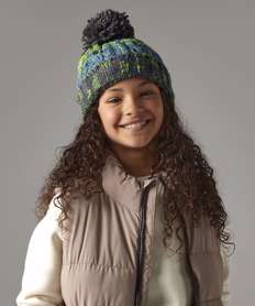 Junior corkscrew pom pom beanie