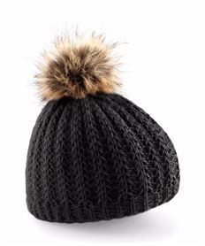 Fur pop pom chunky beanie