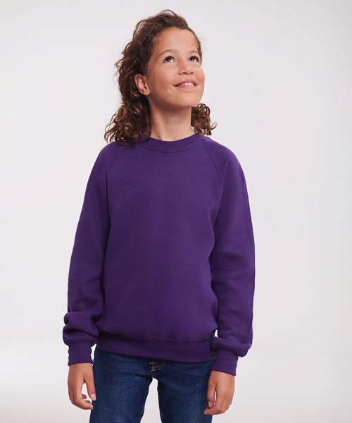 Iconic school sweatshirt. Twin needle coverseams on neck. Raglan sleeve cuffs and waistband for extra durability. Herringbone back neck tape. Spotshield stain resistant coating for fabric protection. Fade resistant.