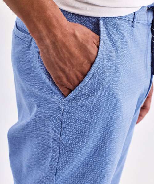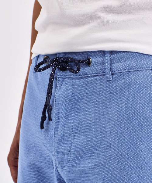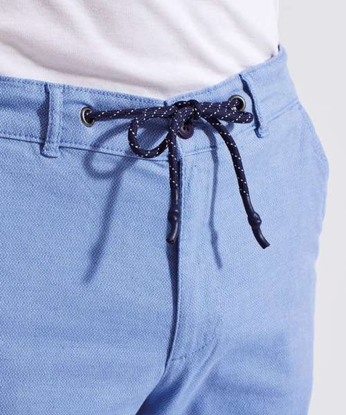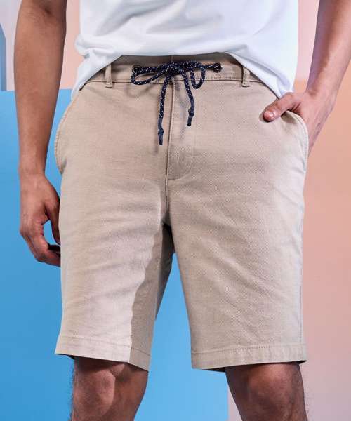 Men’s chino shorts with two swing pockets and two back jet pockets. Zip fly and button fastening to the front. Belt loops. Drawstring detailing. Product contains no branded neck label. Removable Kimble or looped garment tags. Inner seam label holds important product information on one label with a second label containing brand information which can be cut-away. Please note old stock may contain a fixed branded label.