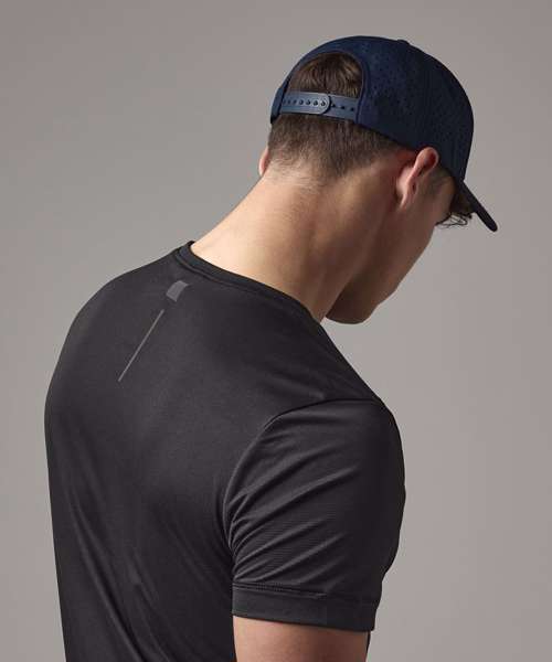 6-panel design. Pre-curved peak. Laser-cut ventilation for enhanced breathability. Snap-fastening strap adjuster. TearAway label for ease of rebranding. 100% Recycled polyester.