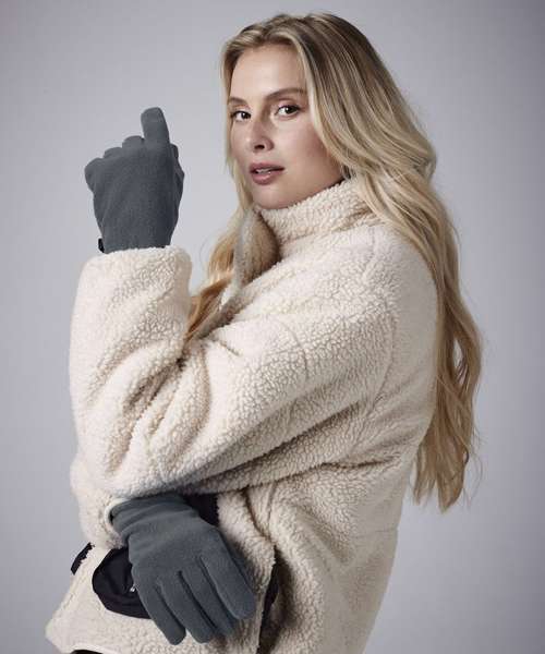 Made from 100% certified recycled polyester. These well-fitting and highly-insulating gloves are a winter accessory essential. The short-pile, anti-pill fleece is soft to the touch, while an elasticated wrist and stretch fit ensures maximum comfort. This practical unisex design also features a connective clip for added convenience.