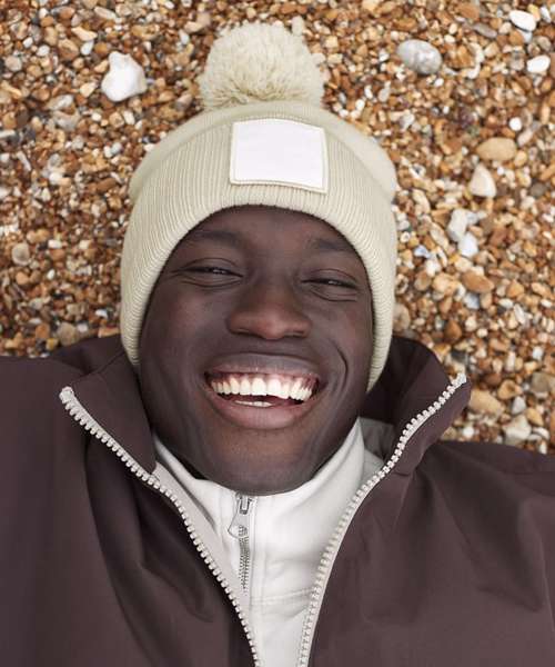 Contains 100% certified recycled material. Double layer knit. Cotton twill patch for decoration. Self-coloured pom pom. Microfleece lining for comfort and warmth. TearAway label for ease of rebranding.