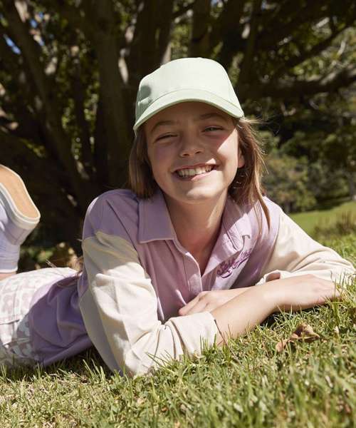 Contains 100% certified organic cotton. 5 panel design. Structured front panels. Pre-curved peak. Stitched ventilation eyelets. Child-safe secure button. Snapback size adjuster. TearAway label for ease of rebranding.
