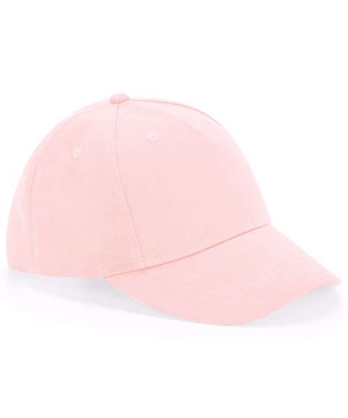 The B63NB is the latest addition to Beechfield®’s growing family of junior caps. This 5 panel design, crafted from 100% certified organic cotton twill, features a pre-curved peak, stitched ventilation eyelets, a child-safe secure top button and a fully adjustable snapback size adjuster offering ergonomic comfort. Complemented by a palette of 6 family friendly colourways, from Powder Pink to Pistachio.