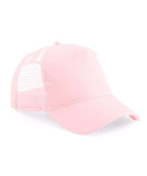100% Cotton front panel and peak. 100% Polyester mesh rear panels. 5-panel design. Pre-curved peak. Retro style snapback size adjuster. TearAway label for ease of rebranding.
