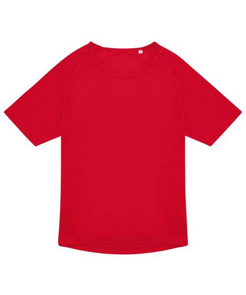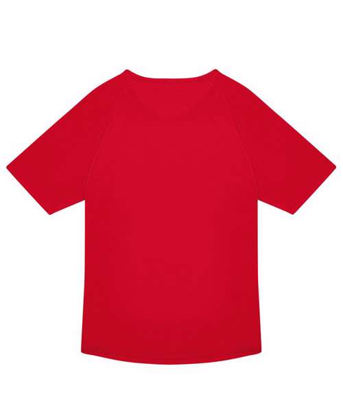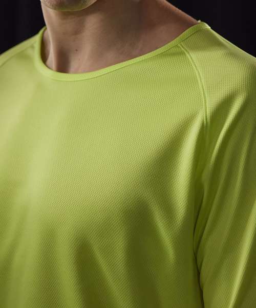 Breathability, inherent wicking (mesh). Quick-drying. True gender-neutral contemporary fit. Raglan sleeves. Side seams. ‘B&C No Label’ solution. 100% recycled polyester.