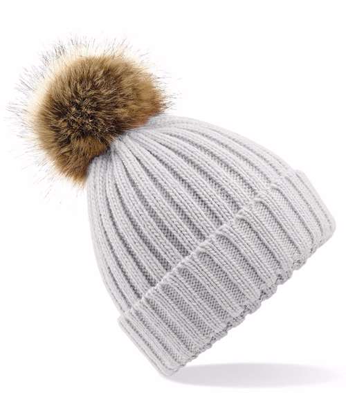 TearAway label for ease of rebranding. Unisex styling. Cuffed design for optimal decoration. Sumptuous heavy ribbed knit. Luxury removable faux fur pom pom for ease of washing.