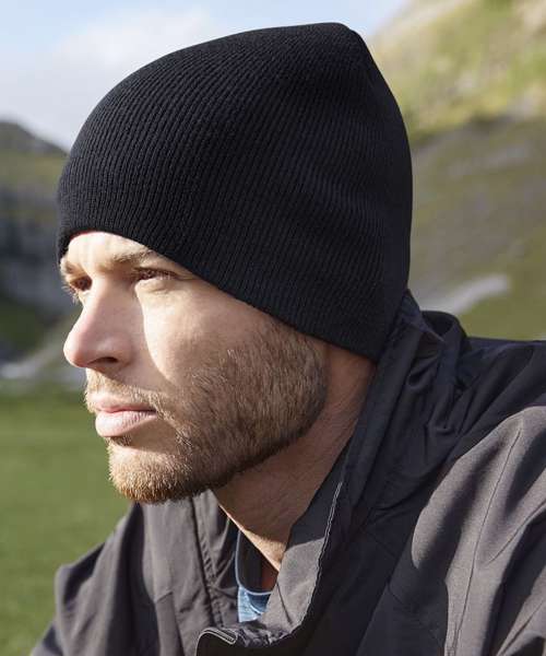 Made from recycled plastic, the recycled-polyester yarn used in the BC44R helps to reduce waste and lessens the use of oil-based raw materials. This 100% certified pull-on style, in a classic mid-length design, is an easy, relaxed, grab-and-go beanie. Offering all the quality and comfort of our original BC044 pull-on beanie with a sustainable update.