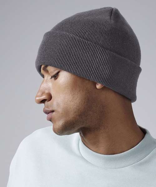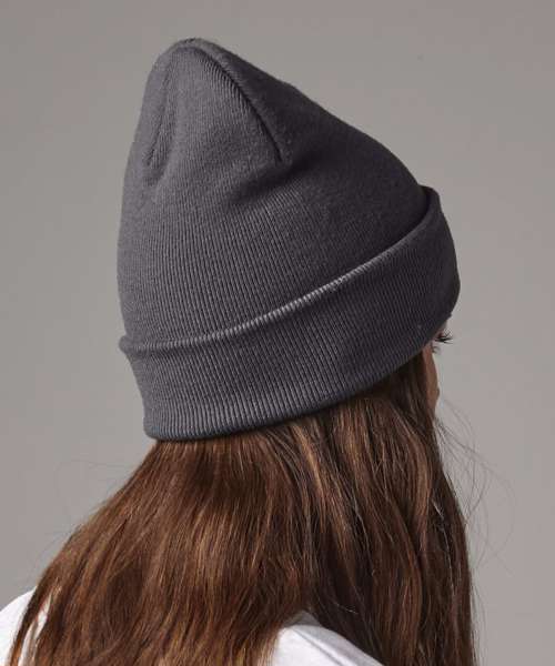A new sustainable take on the Beechfield® Classic original cuffed beanie is the BC45R which is made from 100% certified recycled polyester. By using recycled-polyester yarn, we are helping to reduce waste and lessen the use of oil-based raw materials. The BC45R is a circular knitted, soft ribbed style with minimal detailing and a simple turn-up, perfect for decoration. This warm and comfortable double layer beanie is the ideal, conscious choice for both your everyday and outdoor adventures.
