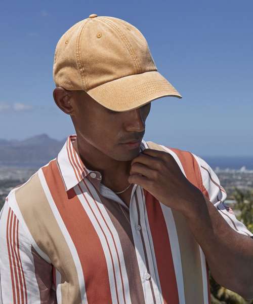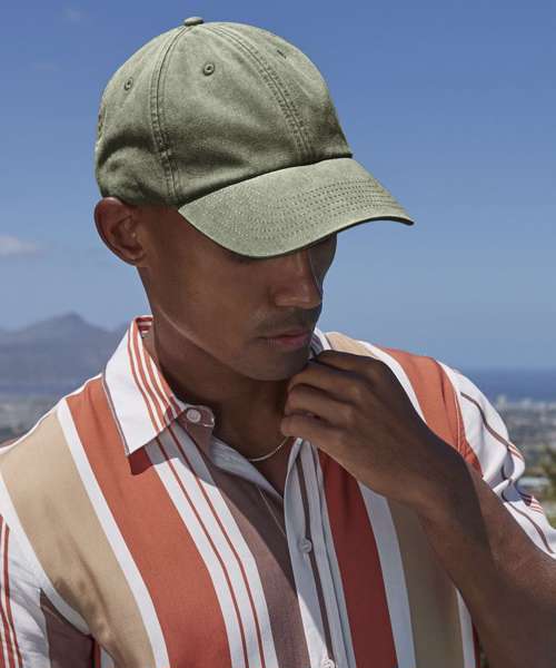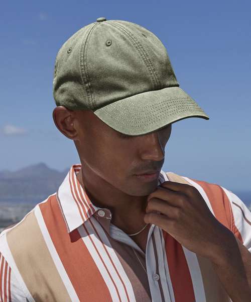 TearAway label for ease of rebranding. Low profile 6 panel design. Soft unstructured crown. Vintage styling. Pre-curved peak. Stitched ventilation eyelets. Self fabric strap with brass effect buckle.
