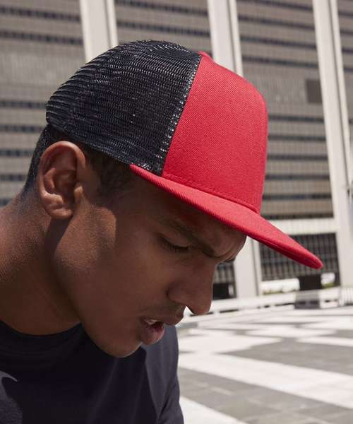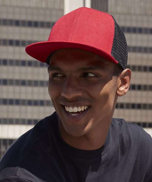 100% Polyester twill front panel and peak. Mesh rear panels: 100% Polyester