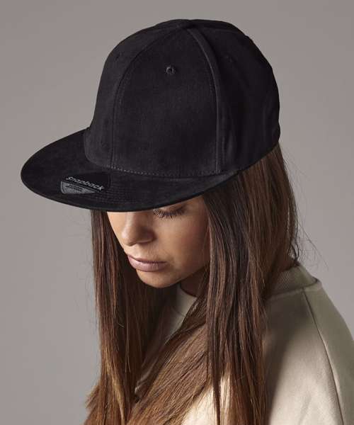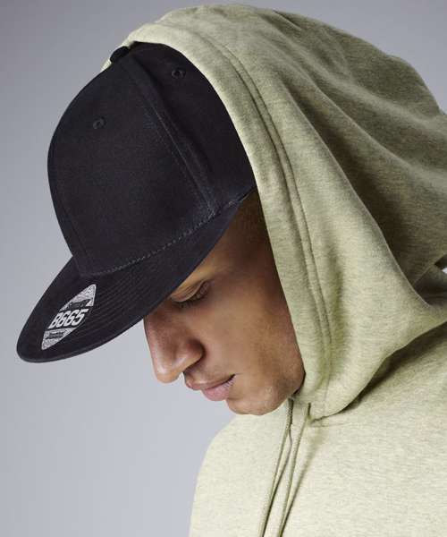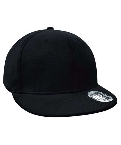 TearAway label for ease of rebranding. 6-panel design. Structured front panels. Flat peak. Authentic peak sticker. Retro style snapback size adjuster.
