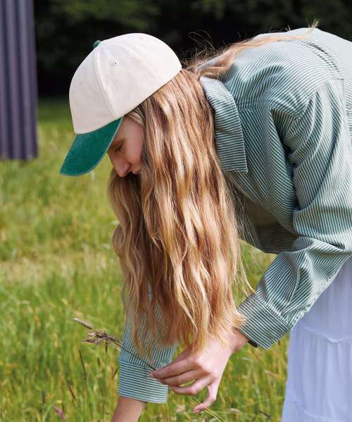 Contrast detailing. Vintage styling. Low-profile 6-panel design. Soft, unstructured crown. Pre-curved peak. Stitched ventilation eyelets. Self-fabric strap with brass-effect buckle. TearAway label for easy rebranding.