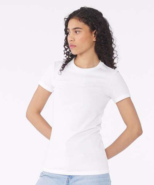Her go-to tee fits like a well-loved favourite, featuring a slim feminine fit, crew neck, short sleeves and superior combed and ringspun cotton that acts as the best blank canvas for printing. Offered in a variety of solid and heather cvc colours.