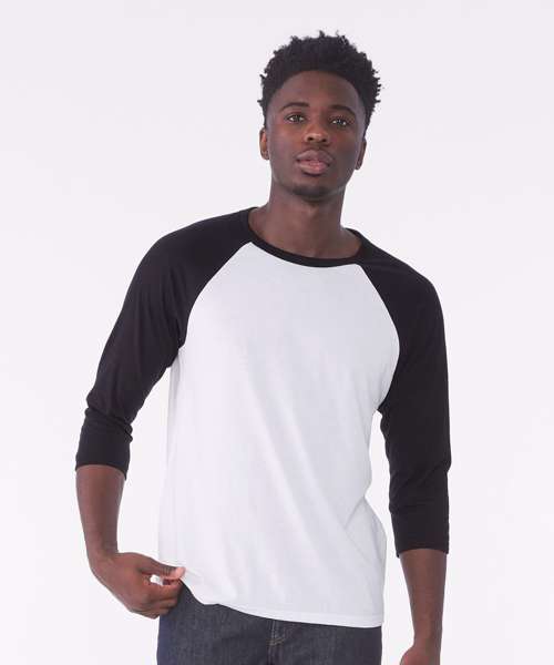 The classic baseball tee with raglan 3/4 sleeves takes on a fresh update with a super soft blends of combed and ringspun cotton, modern fit, 3/4 contrast raglan sleeves and crew neck with contrast trim. This 3/4 sleeve blank baseball tee has a tight-knit surface and is great for printing on. This tee comes in a variety of cool colour combinations.