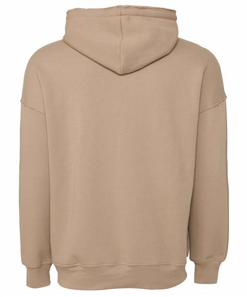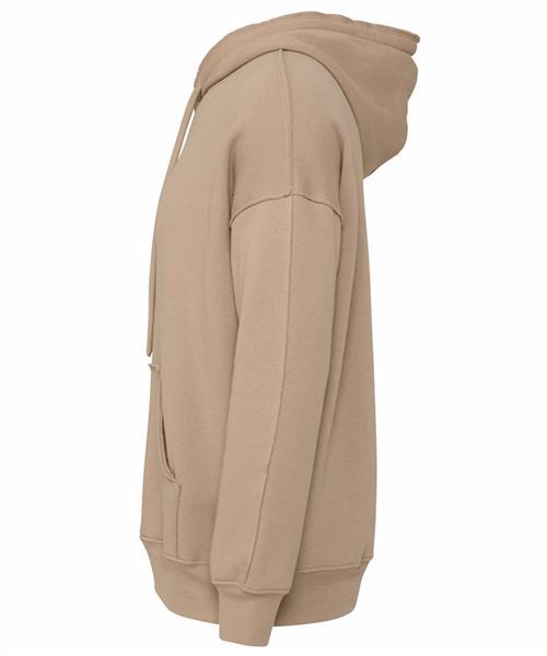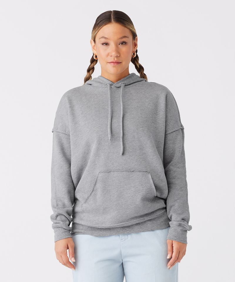 Oversized fit. Raw seams at shoulders and pocket. Oversized kangaroo pocket. Side-seamed. Raw seam finish. Tear-away label. Retail fit.