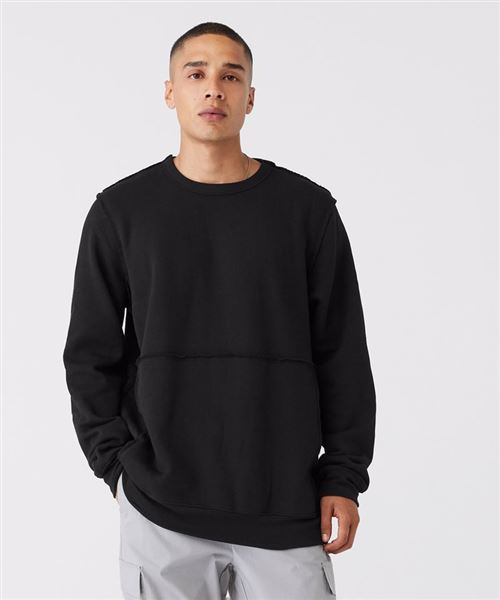 This raw-seam crew pullover is a year-round essential, in super-soft sponge fleece designed for warmth and breathability. With an oversized kangaroo pocket and on-trend raw-seam finish, this pullover completes any laid-back, layered look. Thoughtful details include side seams and set-in sleeves.
