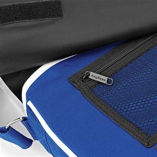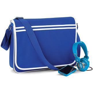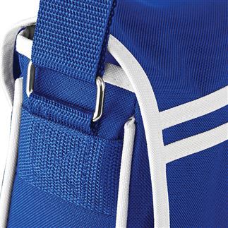Retro styling. Adjustable shoulder strap. Zippered mesh pocket under flap. Rip-Strip™ closure. Contrast detailing. Reach certified.