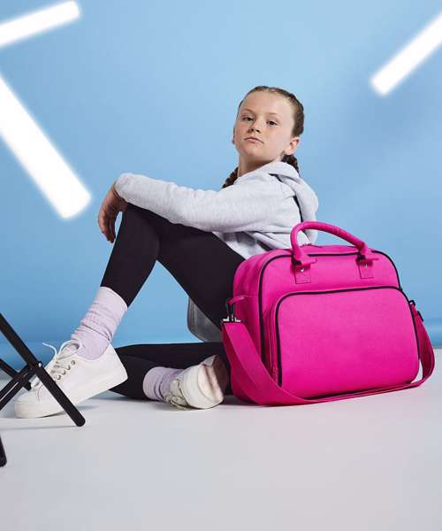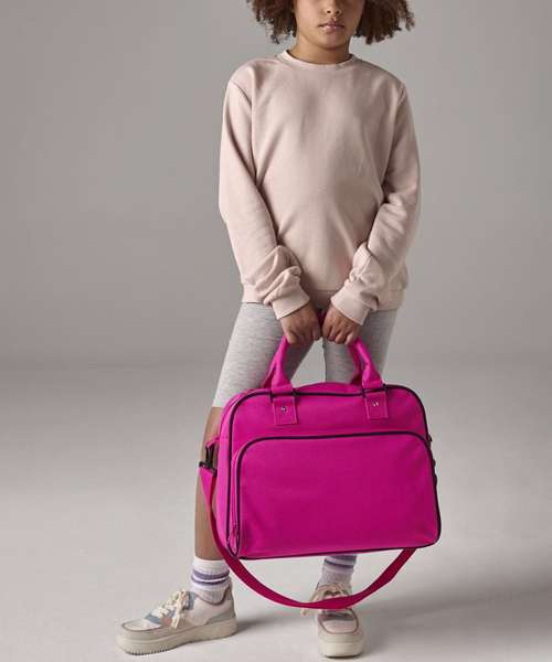 Retro styling. Detachable adjustable shoulder strap. Zippered main compartment. Zippered front pocket. Internal mesh pocket. Internal baseboard. Self-fabric carry handles.