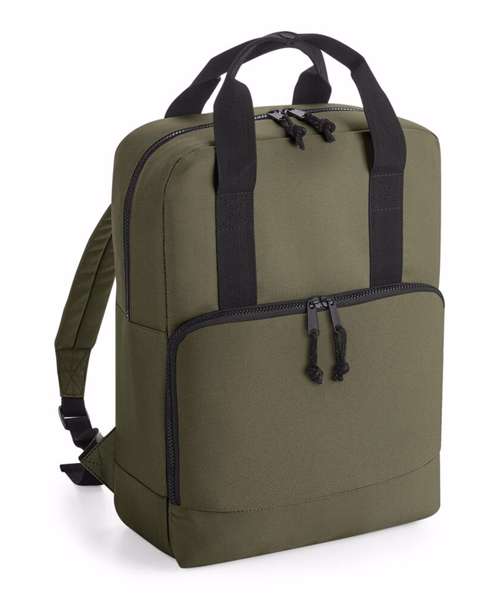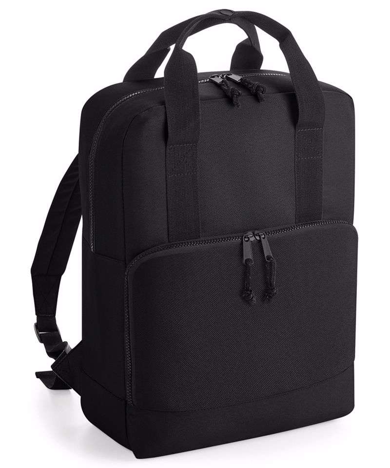 Make way for the new wave of cool bag, abandoning convention in favour of casual, contemporary style. This 100% recycled polyester backpack provides the perfect laid-back look for trips outdoors, days at the park or adventures on foot. Its insulated main compartment keeps snacks chilled and is fully lined with a handy PEVA wipe-clean interior. Padded, adjustable straps keep comfort in check, while twin carry handles and a zippered front pocket break the mould for a modern cool bag design.