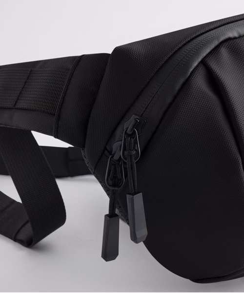 Contains 100% recycled 900D polyester with PU coating. Hidden external zipped valuables pocket. Two internal padded slip pockets. Internal zipped mesh pocket. Water-resistant zip closures. Fully adjustable waist strap. TearAway label for ease of rebranding. Global Recycled Standard (GRS-certified, CU811033).