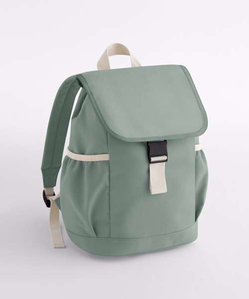 Contrast colour styling. Elasticated side pockets. Fold-over flap with adjustable buckle closure. Drawstring closure. Grab handle. Adjustable shoulder straps. Tear-away label for ease of rebranding. Contains 100% GRS certified recycled polyester, certified by Control Union CU811033.