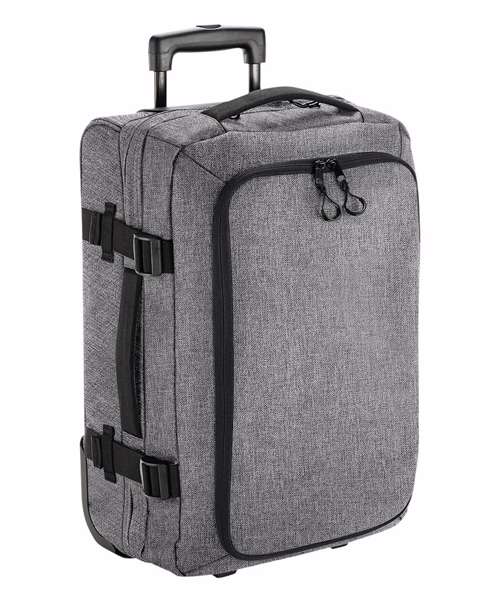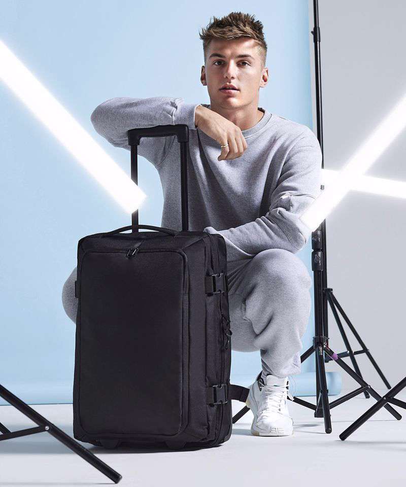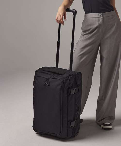 TearAway label for ease of rebranding. Convenient dual compartment design for easy packing. Lockable main compartment zip. Large zippered front compartment with internal mesh divider. Zippered internal pocket. Dual compression straps. Padded top and side handles. High stability retractable twin-handle. Aircraft cabin compatible - suitable for most airlines. Durable integrated skate wheels. Can be further customised with BG485 Escape handle wrap. Padded laptop compartment, compatible up to 15.6".