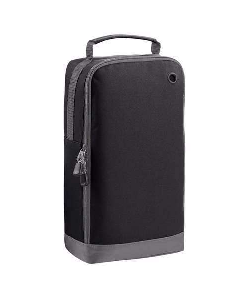 Water-resistant fabric. Wipe clean interior. Rear mesh pocket. Metal ventilation eyelet. Grab handle.