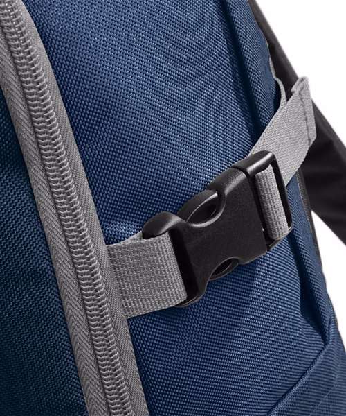 TearAway label for ease of rebranding. Water-resistant fabric. Dual compartment design. Laptop compatible up to 15.6". Padded laptop compartment. Media pocket and headphone port. Padded adjustable shoulder straps. Wet pocket. Compression straps. Padded back panel. Organiser section. Elasticated bottle loop. Metal ventilation eyelets. Grab handle.