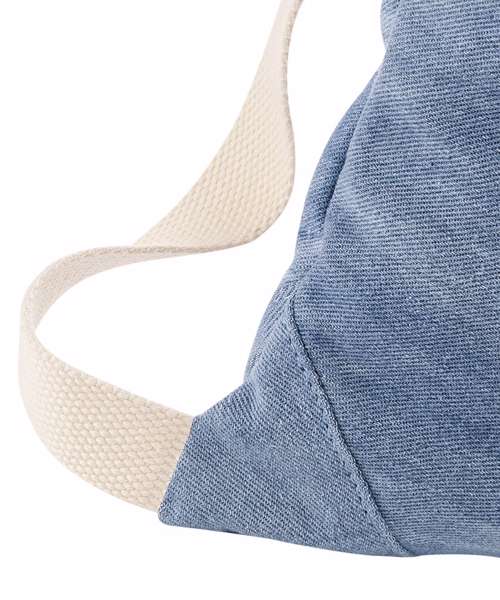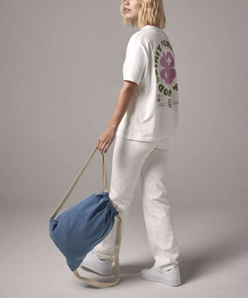 The denim gymsac offers a relaxed aesthetic and can be carried by hand or over the shoulder. With a focus on soft textures and ample space for surface decoration, this denim, drawstring bag adds instant cool to any casual accessories collection.