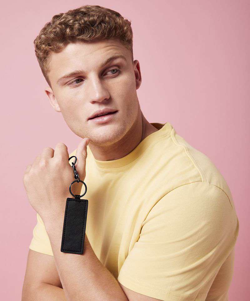 Personalise your Boutique collection with these interchangeable and customisable key clips. Designed for ease of decoration, this 100% leather-look design can be used as a keyring or bag charm. Fine grain Saffiano fabric gives a luxurious finish, while a high-shine, gold metal key clip adds to the premium quality. Also available in circular (BG745) and heart-shaped (BG746) styles.