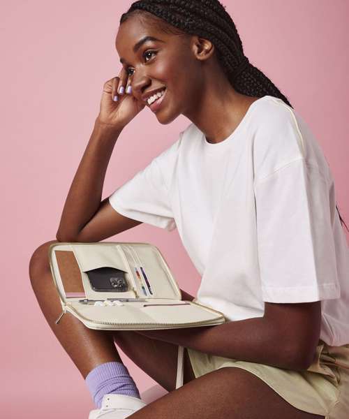 TearAway label for ease of rebranding. Saffiano fine grain. Can be decorated front and rear. Zippered main compartment. Zippered internal pocket. Multiple internal pockets. Holds 6 credit cards. Soft-touch lining. iPad mini/ Tablet compatible. Multi-purpose use.