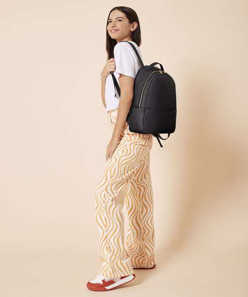 Made from 100% leather-look fine grain Saffiano fabric, this stylish backpack has a signature premium finish, accentuated by its high-shine, gold metal hardware. Inside the spacious main compartment is a multi-purpose organiser, secure valuables pocket and luxurious, soft-touch lining. The multi-purpose design also features a padded laptop sleeve, secure zippered back panel pocket, wheeled luggage handle strap and self-fabric adjustable shoulder straps.