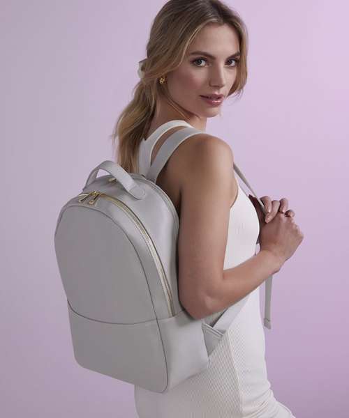Saffiano fine grain. Zipped main compartment. Internal organisation pocket. Internal water bottle holder. Discreet zipped back panel pocket. Zipped internal valuables pocket. Soft-touch lining. High shine gold metal zips. Wheeled luggage handle strap. Self-fabric adjustable shoulder straps. Grab handle. TearAway label for ease of rebranding.