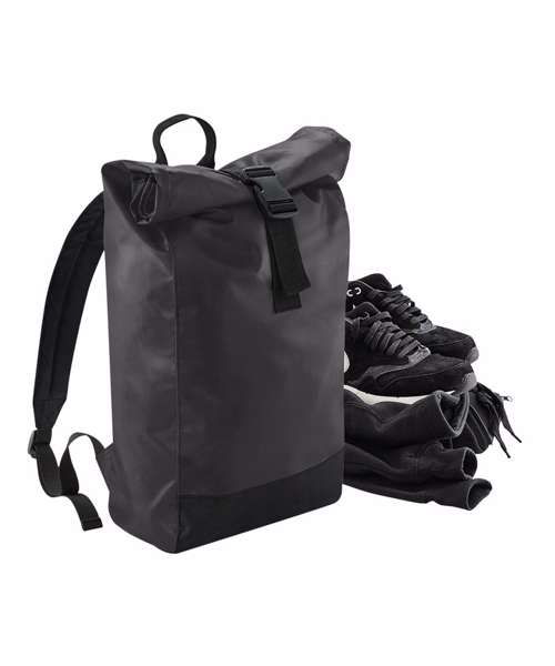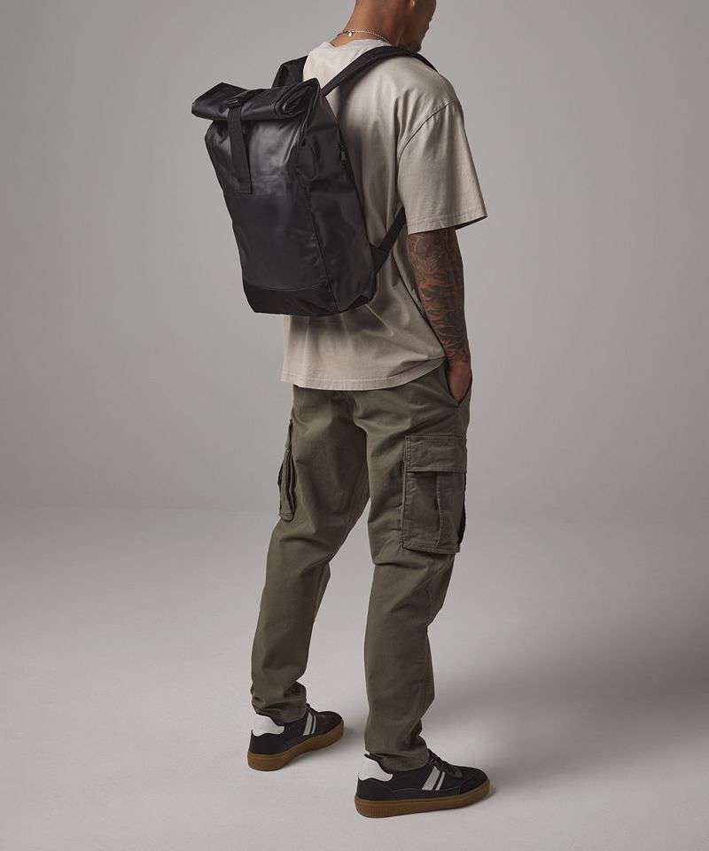 TearAway label for ease of rebranding. Urban styling. Roll-top closure. Hidden stash pocket. Padded adjustable shoulder straps. Grab handle. BSCI certified. Reach certified.