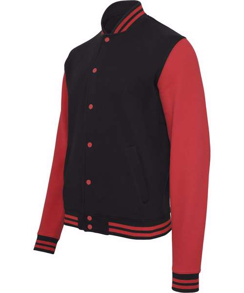 The college style presents itself as a cool stylish jacket with contrasted cuffs to offer a preppy look and feel. The inside brushed sweat fabric makes it comfortable to wear. Typical details such as striped rib cuffs at the collar, hem and sleeve and metal press-buttons emphasize the cool look. Two pockets on the front, set-in sleeves and neck half-moon with neck tape. This item is manufactured in a FAMA Certified factory. FAMA stands for Facility and Merchandise Authorisation and is a high standard production certificate.