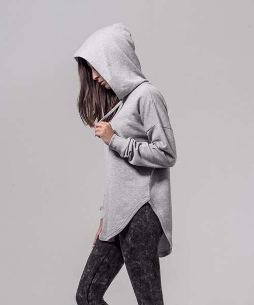 Loose terry. Neutral size label without branding. Fashionable shaped hem. Rip cuff at the hem. Hood with single seam and flat drawstrings.