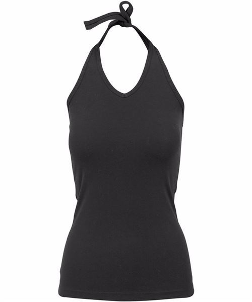 The Women's neck holder shirt is a traditional summer top with many benefits. The shirt's straps can be knotted individually at the neck and thanks to the stretch Jersey fabric, this feminine shirt always provides a perfect fit. The lightweight cotton blend is ideal for printing.