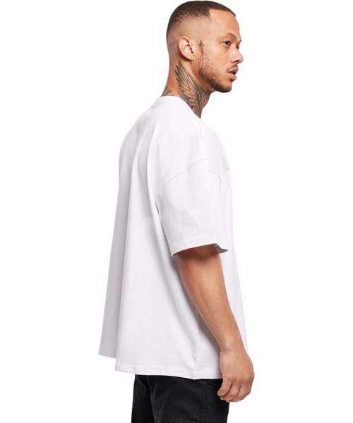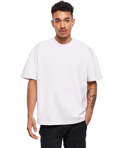 An edgy, men’s tee that satisfies with its wide, oversize fit and heavy cotton fabric. The overlapping shoulders section and classic crew neck round off the urban style of a tee that will stay true to its wearer in any environment. Ideal for refining with embroidery, flock print or screen printing.