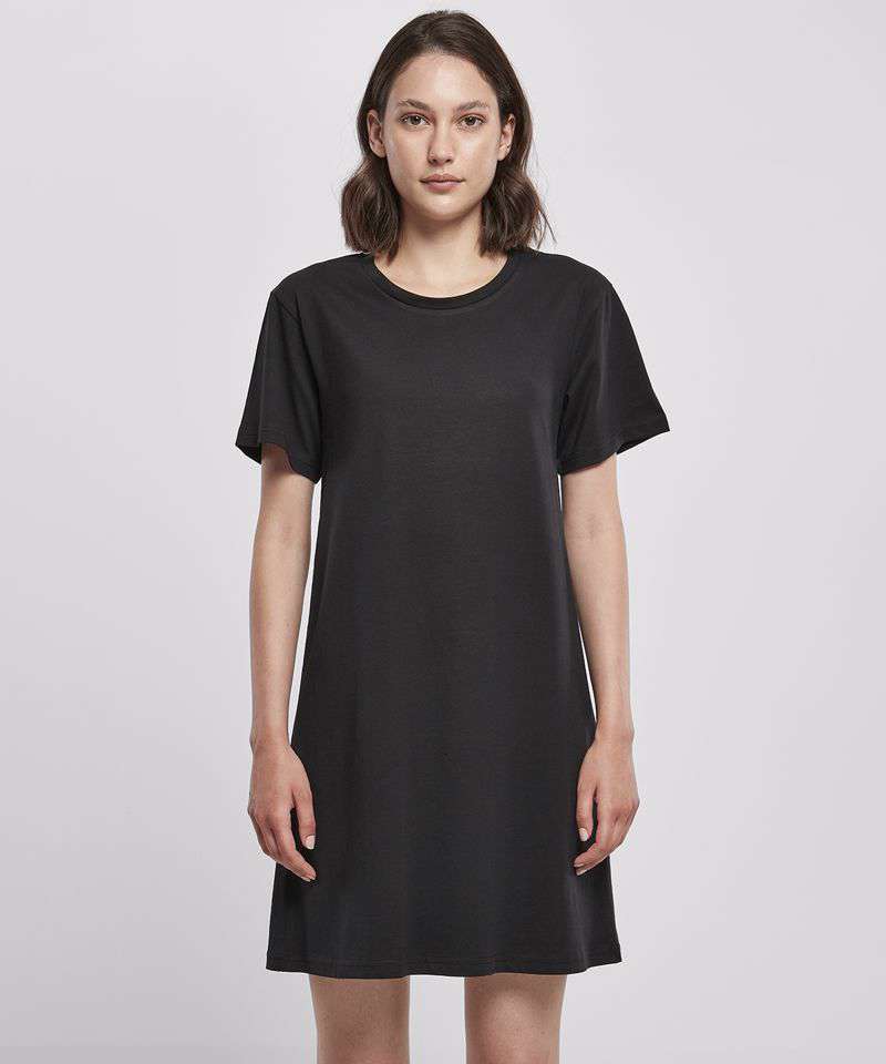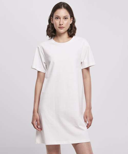 This unpretentious tee dress offers a sporty yet feminine look, featuring a fine crew neck, short sleeves and a slightly flared A-shape that conjures up a great figure. The cut of the mini dress is a supple loose fit, while the material consists of skin-friendly, smooth cotton for further refinement with embroidery or print.