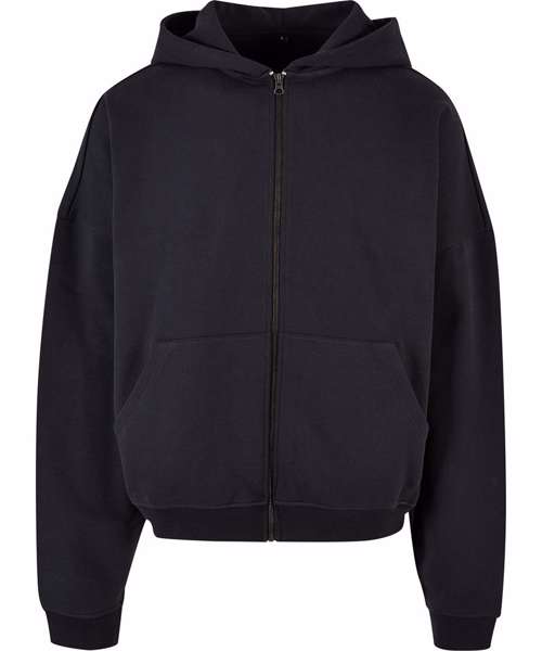 Presenting an oversized fit with heavily dropped shoulders, an extra-large hood and a divided kangaroo pocket, this men’s zip hoodie is a homage to the vibe of the 90s. The style is completed by wide rib cuffs on the sleeves and hem. Made from heavy cotton terry, it can further be refined with screen or flex printing.