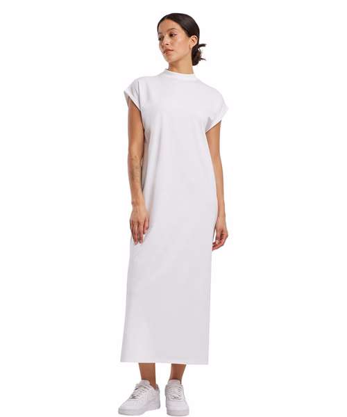 The Women’s long extended shoulder dress is a sophisticated addition to any wardrobe, offering a perfect blend of comfort and style. Designed with a contemporary H-shape cut, it provides a flattering loose fit that drapes elegantly over the body. The calf-length design adds a touch of grace, making it suitable for various occasions. Its collarless neckline transitions into a chic racerback, providing an understated yet modern aesthetic. The dress features short sleeves with cut-on shoulders, offering ease of movement and a relaxed silhouette. With its uni pattern, this piece exudes timeless elegance and versatility, allowing for effortless pairing with accessories or outerwear. This dress embodies minimalist sophistication while delivering exceptional comfort, making it an essential piece for those who appreciate understated elegance in their fashion choices.