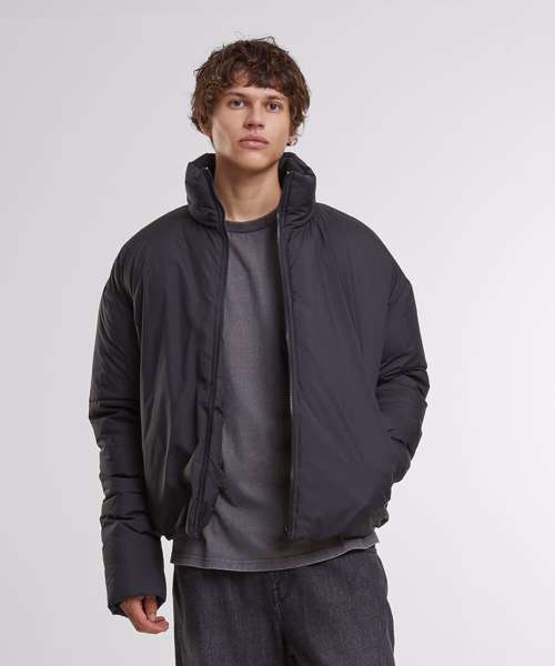 Oversized fit for ultimate comfort. Stylish stand-up collar design. H-line cut enhances modern silhouette. Full-length sleeves for added warmth. Uni pattern for versatile styling.