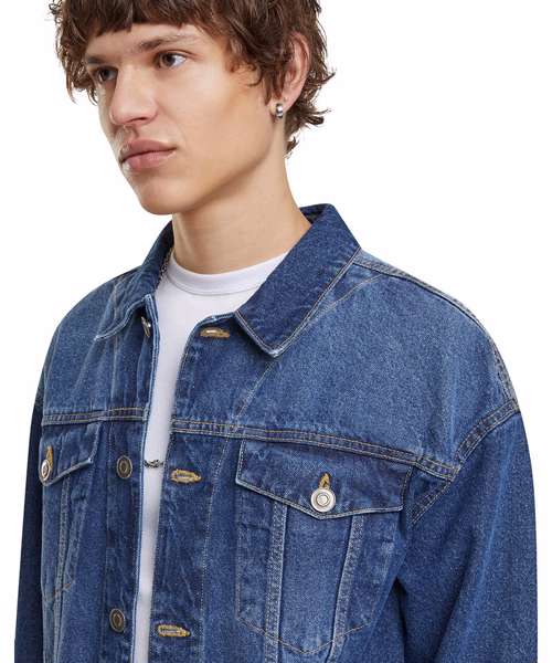 Introducing the Heavy ounce boxy denim jacket – a quintessential piece for any wardrobe seeking timeless style and durability. Crafted with meticulous attention to detail, this jacket features a classic regular collar that exudes sophistication. The button closures from left to right provide a secure fit and add an element of traditional charm. Designed for men, its regular fit ensures comfort without compromising on style, making it suitable for various occasions. This denim jacket is characterised by its long set-in sleeves, offering both warmth and versatility in wear. Its unadorned pattern highlights the rich texture of the heavy ounce denim, allowing it to stand out as a statement piece in any ensemble. With no additional cuts or rise, the jacket maintains a clean and structured silhouette that complements its boxy design. Perfectly suited to those who appreciate enduring fashion staples, this jacket promises to be a reliable companion through changing trends. Whether layered over casual attire or paired with more formal pieces, it seamlessly integrates with different styles while maintaining its unique identity.
