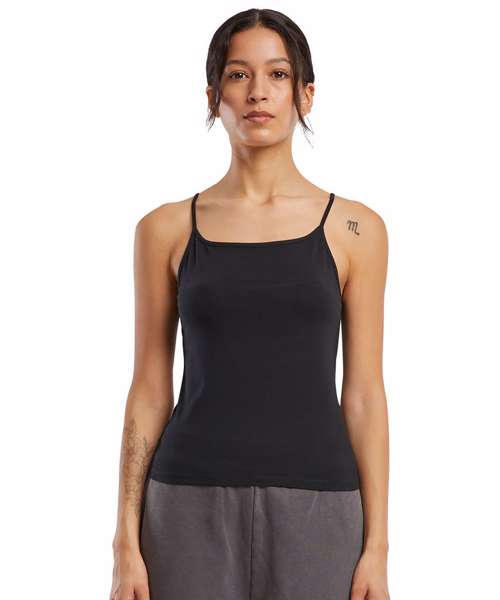 Sleek, sleeveless design for modern style. Comfortable stretch Jersey ensures easy wear. Versatile top with a regular fit. Strap neckline adds a chic touch. Perfect short length for layering options.