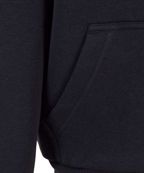 Fluffy texture. Full-length zip closure. Kangaroo pocket. Cosy hood design. Ribbed hem and cuffs.