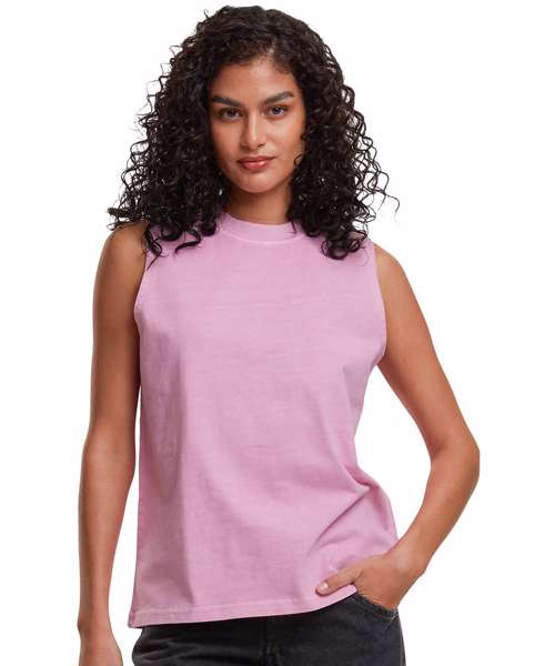The Women’s vintage washed sleeveless tee has a casual fit, the vintage wash giving it a unique, used look that’s perfect for a relaxed yet fashionable style. Light and airy, it’s perfect for warm days.