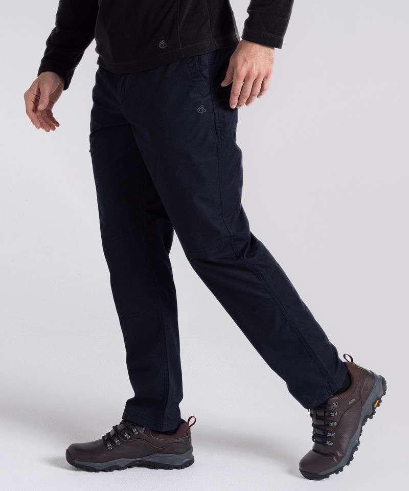 Durable trousers with a water-resistant finish, featuring 9 pockets. Peached recycled polyester and recycled cotton with EcoShield DWR finish. 100% recycled zip tapes. UPF 40+ sun protection and Nosi Defence technology.